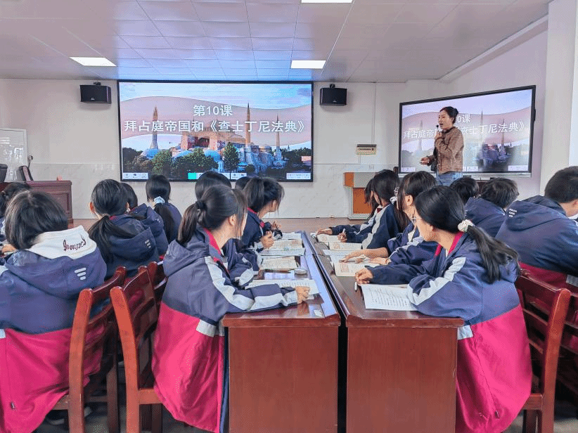 9月24日上午,孝感市丹阳中学高亚林老师在孝昌县花园镇中学讲授历史示范课《拜占庭帝国和<查士丁尼法典>》,以丰富的史料、清晰的脉络帮助学生构建历史认知。