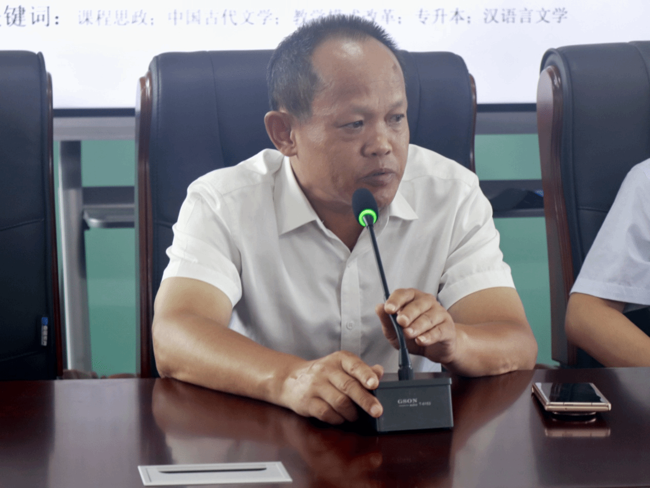 院长助理李志云对汉语言文学专业课程思政建设进行指导,他指出黎晓莲老师分享的方案在课程架构、设计细节及数字化融合上尤为完善,希望各位教师重点学习其系统思维与实践路径,注重课堂细节打磨及学生活动的形式创新与支撑保障。