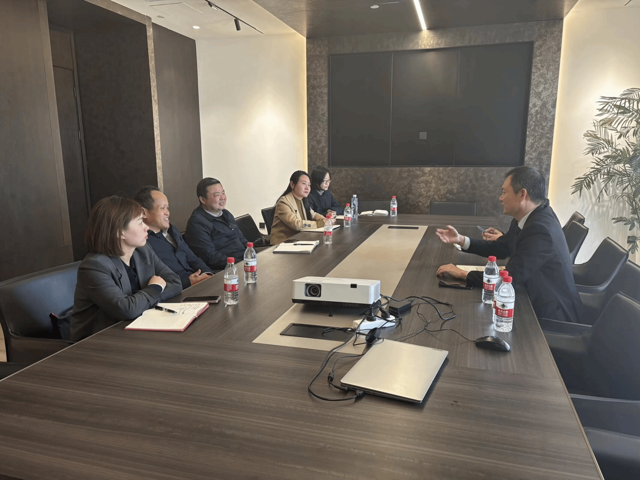 随后,走访团队前往武汉玖玺宴文化发展有限公司。该公司总经理张平详细介绍了企业在餐饮服务、活动主持、会议及展览服务等领域的运营体系与发展规划,重点阐述了企业在宴会策划、活动执行等业务中对高素质新闻播音、新媒体运营人才的需求。双方围绕高端宴会市场发展趋势、专业人才培养标准、企业运营模式创新等方面进行深入探讨。