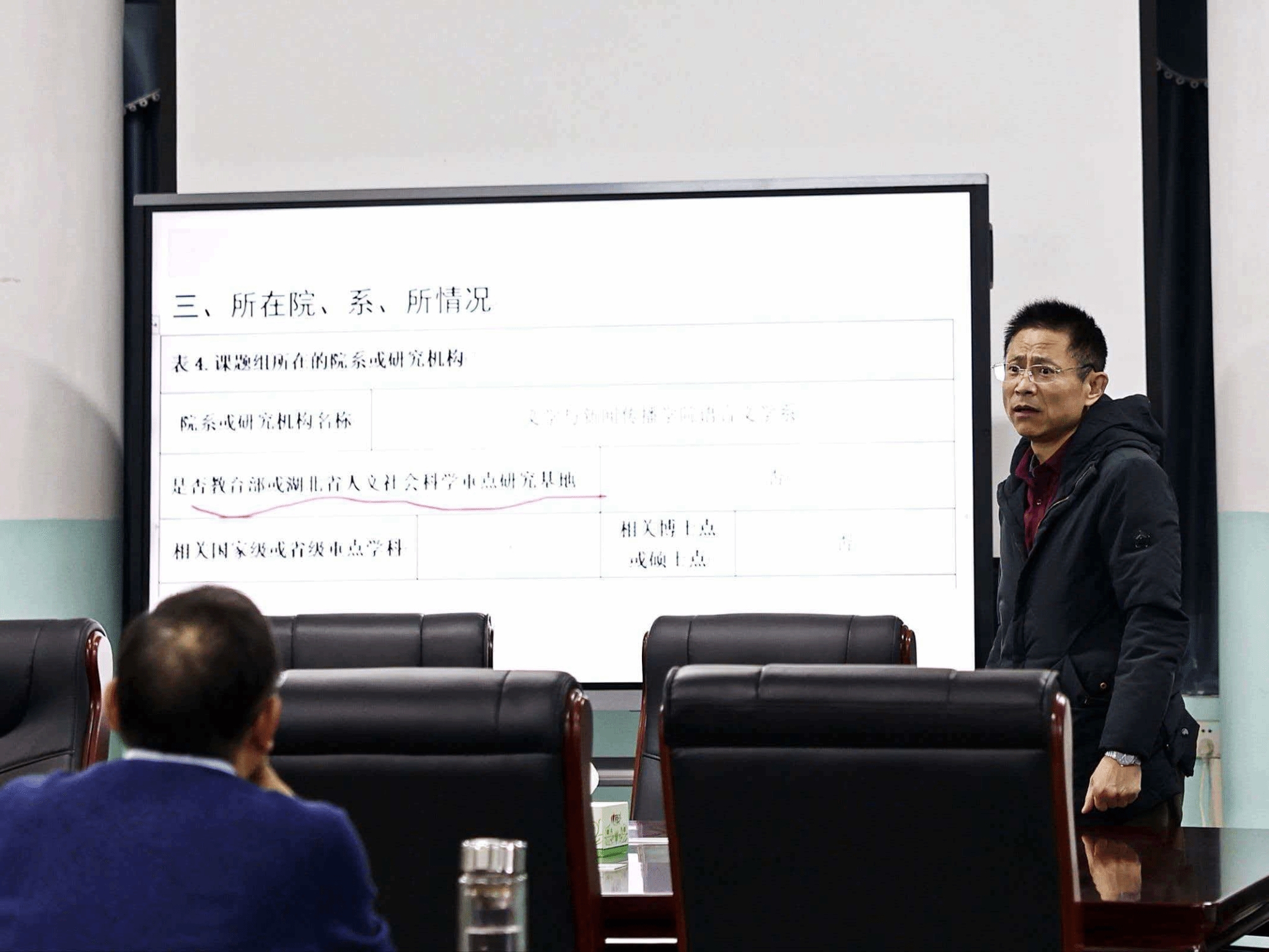 接下来,王应平老师围绕省级重大项目申报与学科团队建设作主题发言。他指出,省级重大项目每年9月申报,是学科建设的重要抓手,相关工作需细化落实至各研究所。此外,王应平老师结合自身的学术研究经历详细分析了学院荆楚抗战文化暨近代报刊史料研究学术团队建设的重要意义和紧迫性,学院教师后续优质科研项目申报与C刊核刊论文发表都可以以此平台为基础。他还提到,目前荆楚抗战资料已全面解密,各类特色数据库为相关研究提供了有力支撑,鼓励教师依托丰富资源深耕这一特色方向,打造标志性科研成果。